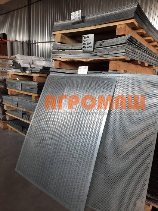 Сепарационные характеристики отверстия Ø1,0 мм: круглые проходы диаметром 1,0 мм отделяют мелкие примеси — семена мари белой, щирицы, ярутки полевой, а также пылевидные частицы и обломки соломы размером до 1,0 мм. Тонколистовая конструкция 0,55 мм снижает вибрационную нагрузку на решётный узел, что особенно важно для финишных секций, где требуется стабильность амплитуды колебаний. Элемент устанавливается в нижнюю секцию решётного пакета после предварительной очистки решётами с отверстиями d1,5 мм и крупнее.
